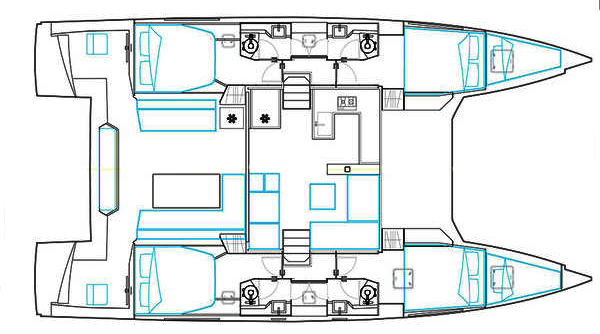 After a day of exploring the Fijian paradise, unwind in the ultimate comfort of Papillon’s luxurious cabins. Each of the four double cabins features a private en-suite bathroom, with a luxurious touch provided by the “Jack and Jill” style showers in each hull. With the ability to comfortably sleep six guests in three cabins, Papillon offers the perfect haven for families, couples, or small groups of friends.