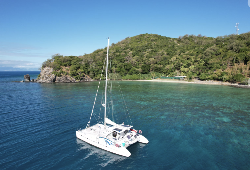 QUIXOTIC is not just a simple catamaran but a 43-foot-long and 25-foot-wide marvel, perfect for a Fiji sailing trip.