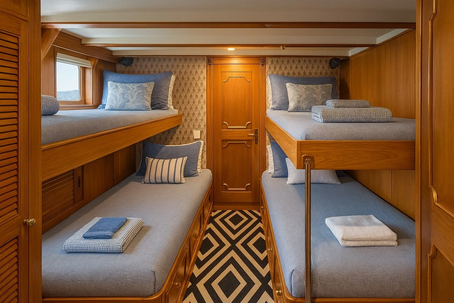 From March 2026; 4 guest suites will be situated on Sea Breeze III’s lower level and 1 guest suite on the bridge deck. There are 12 guest berths in total. The prices vary based on cabin location and berth occupants.